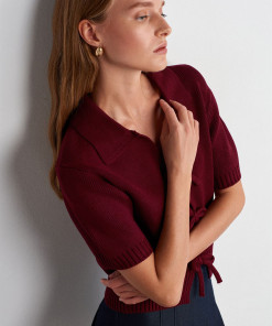 Bisiklet Yaka Kol Ortası Droplu Kazak-Bordo