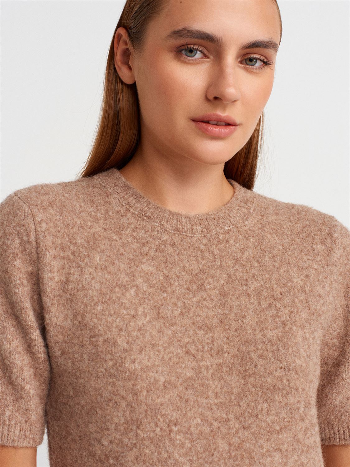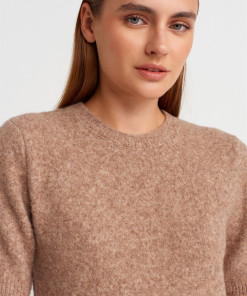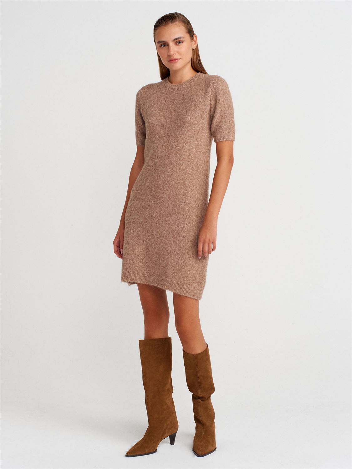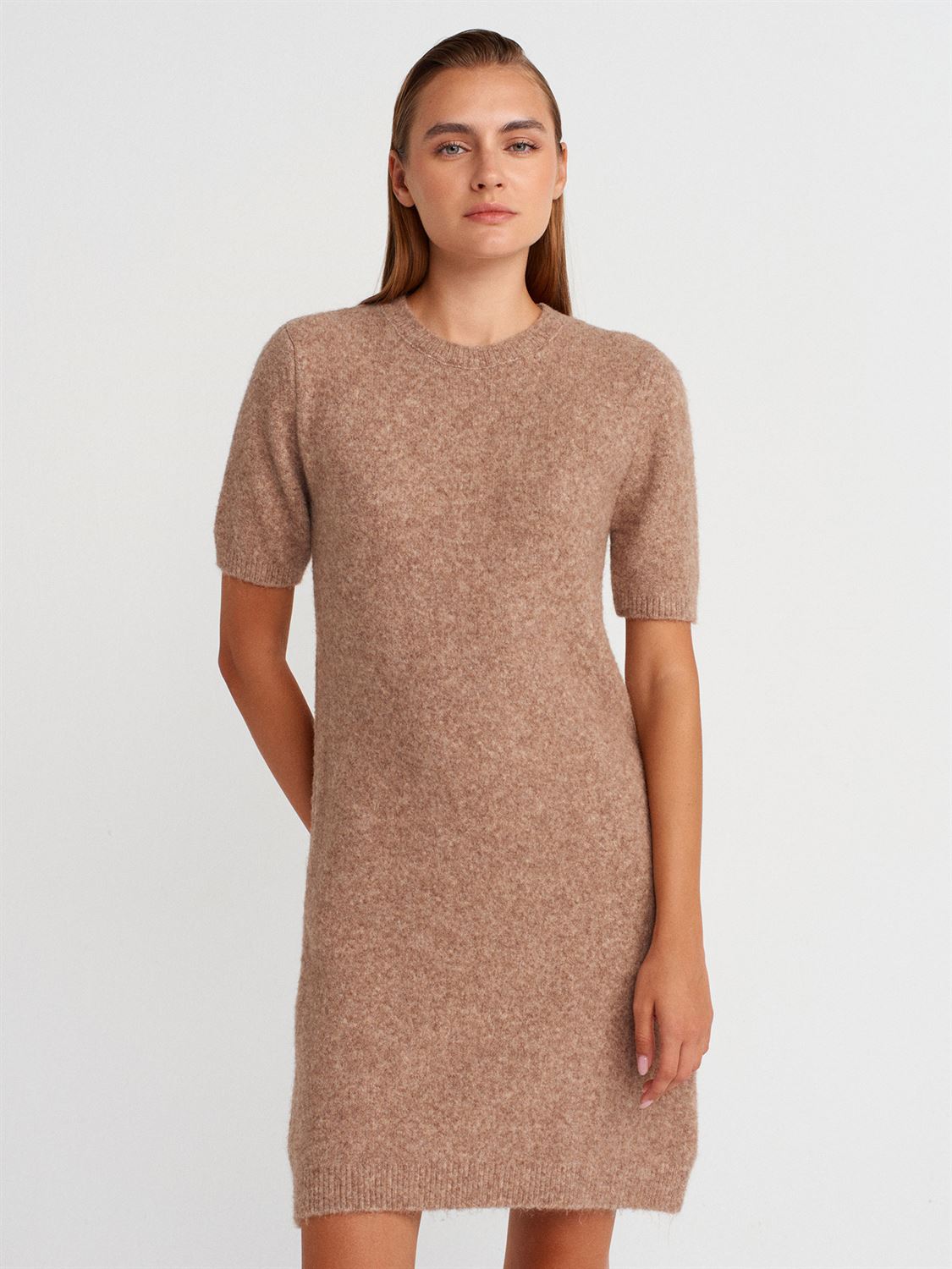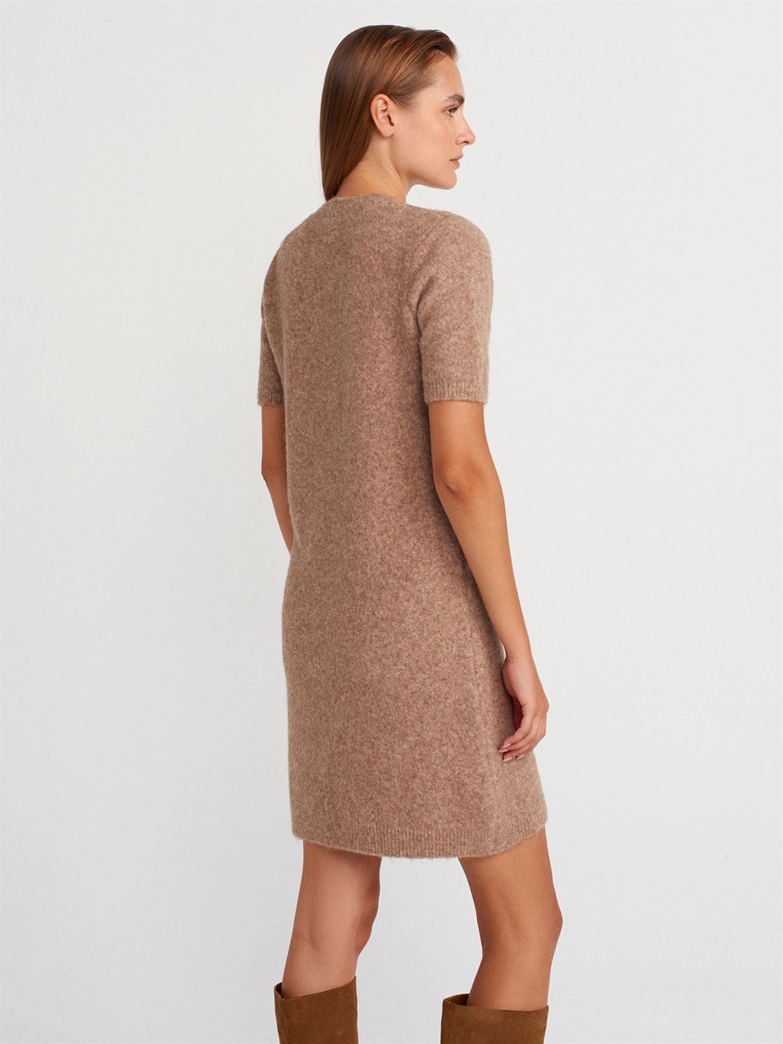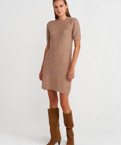 Bisiklet Yaka Yumuşak Dokulu Triko Elbise-K.Bej Mel.